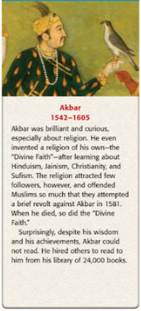 - His policy of religious tolerance (including the abolition of the jizya tax on non-Muslims) and the Din-i Ilahi (a syncretic religion aimed at fostering harmony among different communities) helped in unifying a diverse population.